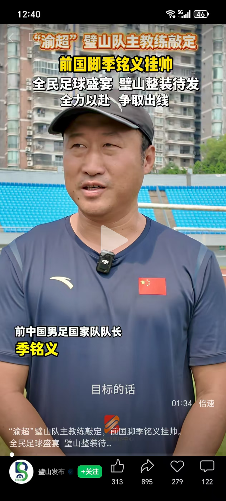 “渝超”璧山队主教练目前敲定,前国脚季铭义挂帅。璧山发布