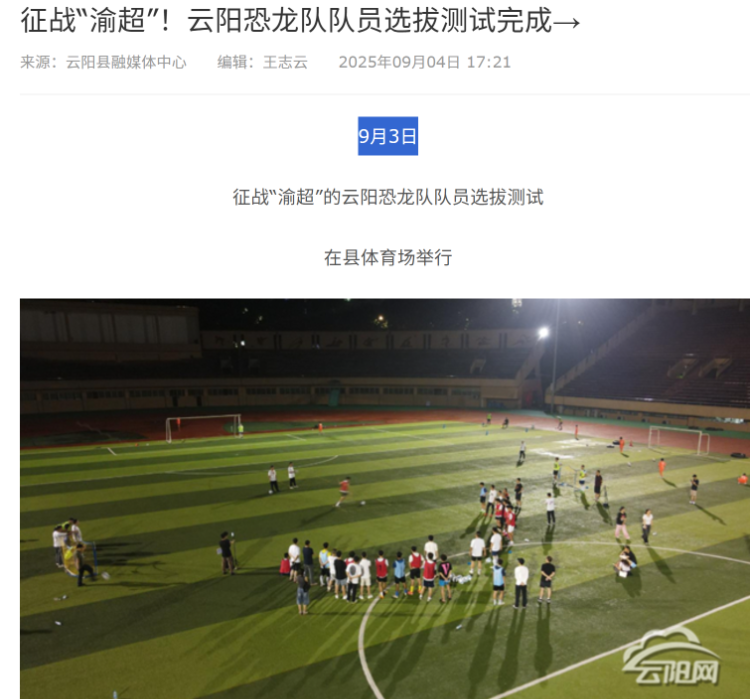 云阳官方媒体在报道中也提及球队叫云阳恐龙队。云阳网
